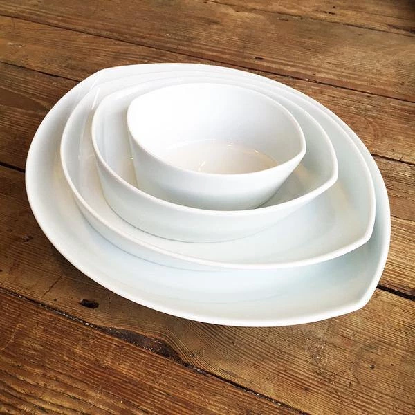 Hakusan Porcelain Leaves Plate Set (4pcs) – Elegant White Dining & Tableware