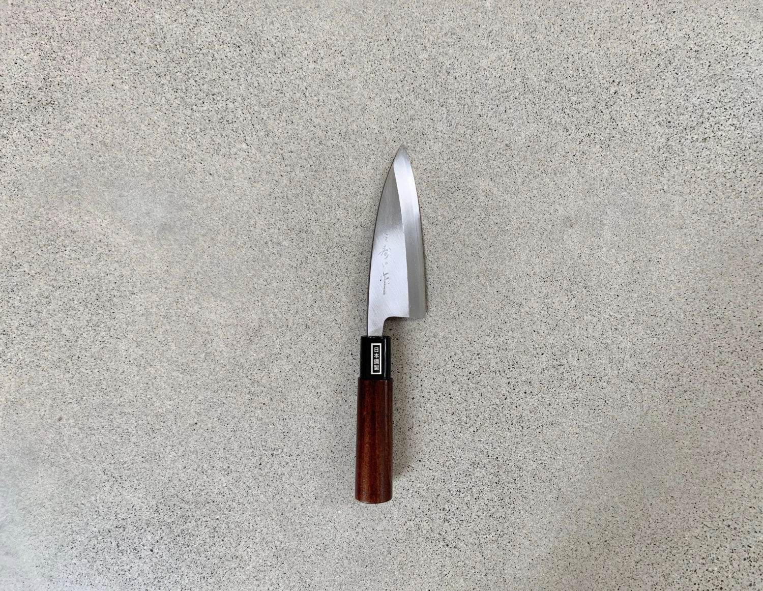 Appearing first during the Edo period in Sakai, the Deba boncho is used for filleting and cutting the heads off fish. Is also handy for cutting chicken and meat. Its thickness and single bevel design enable it to fillet and slice smoothly and it’s weight makes sure fish bones and heads cut cleanly and easily. The main work of the blade is used to ride against the fish bones, separating the fillet. The deba can be made in different sizes up to 30cm, but ours is a very comfortable 165mm. It is not intended for chopping large diameter bones.