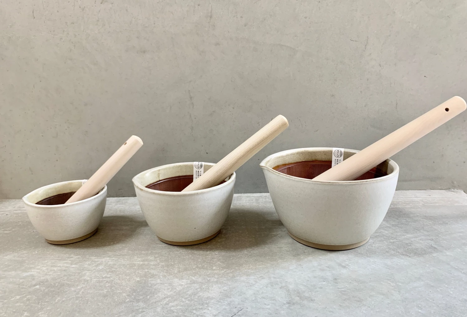 We love this Japanese mortar & pestle, suri-bachi & suri-kogi.