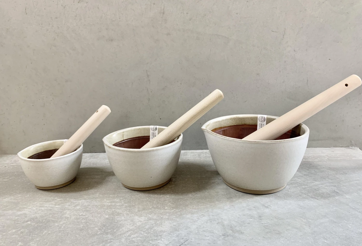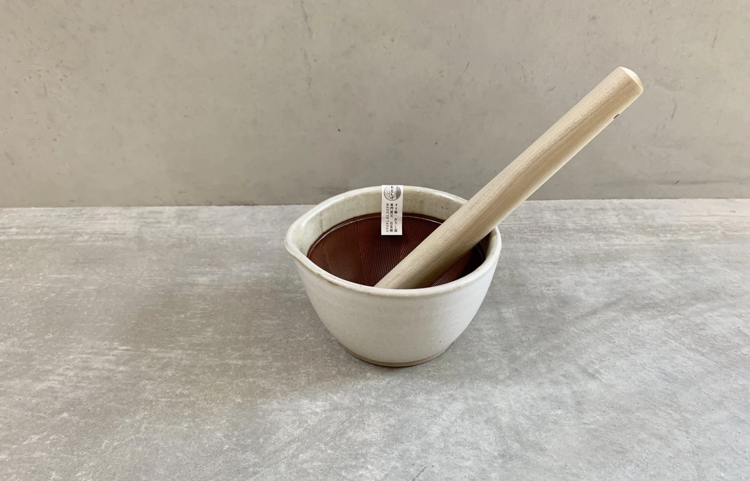 - The MUJUN Suri Bowl (M) Motoshige Mortar & Pestle is crafted with precision and durability in mind, making it an essential tool for any kitchen. Its ergonomic design ensures comfortable use while grinding or crushing spices, herbs, and other ingredients.