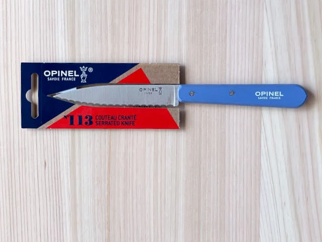 - The Opinel Paring Knife #113 Serrated 10cm is a must-have kitchen tool, offering precision and durability for all your cutting needs. Its serrated edge ensures clean cuts through tough-skinned fruits and vegetables.
