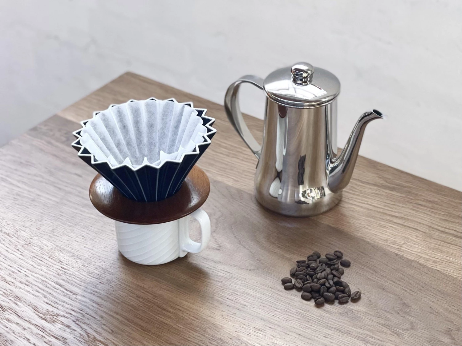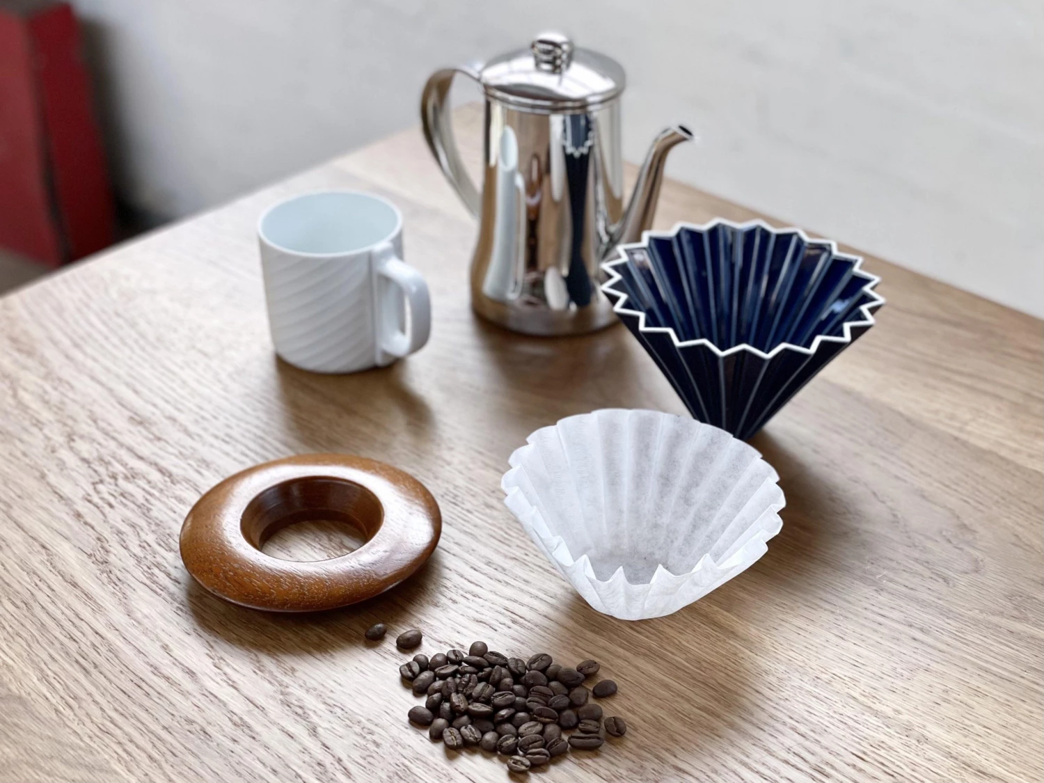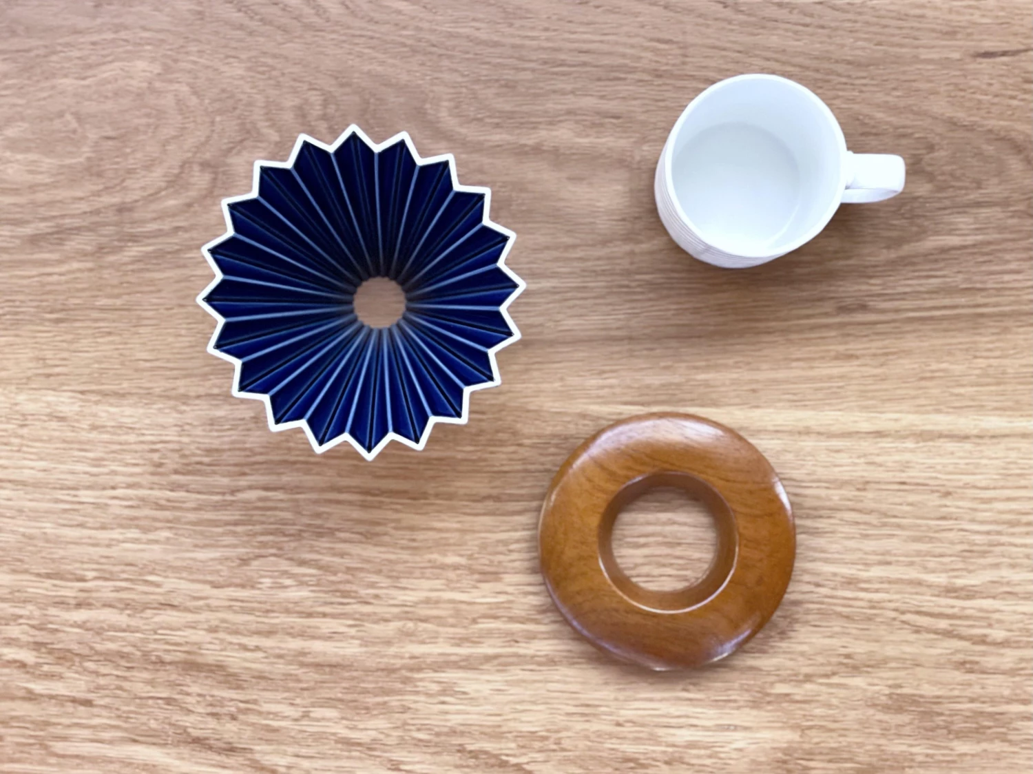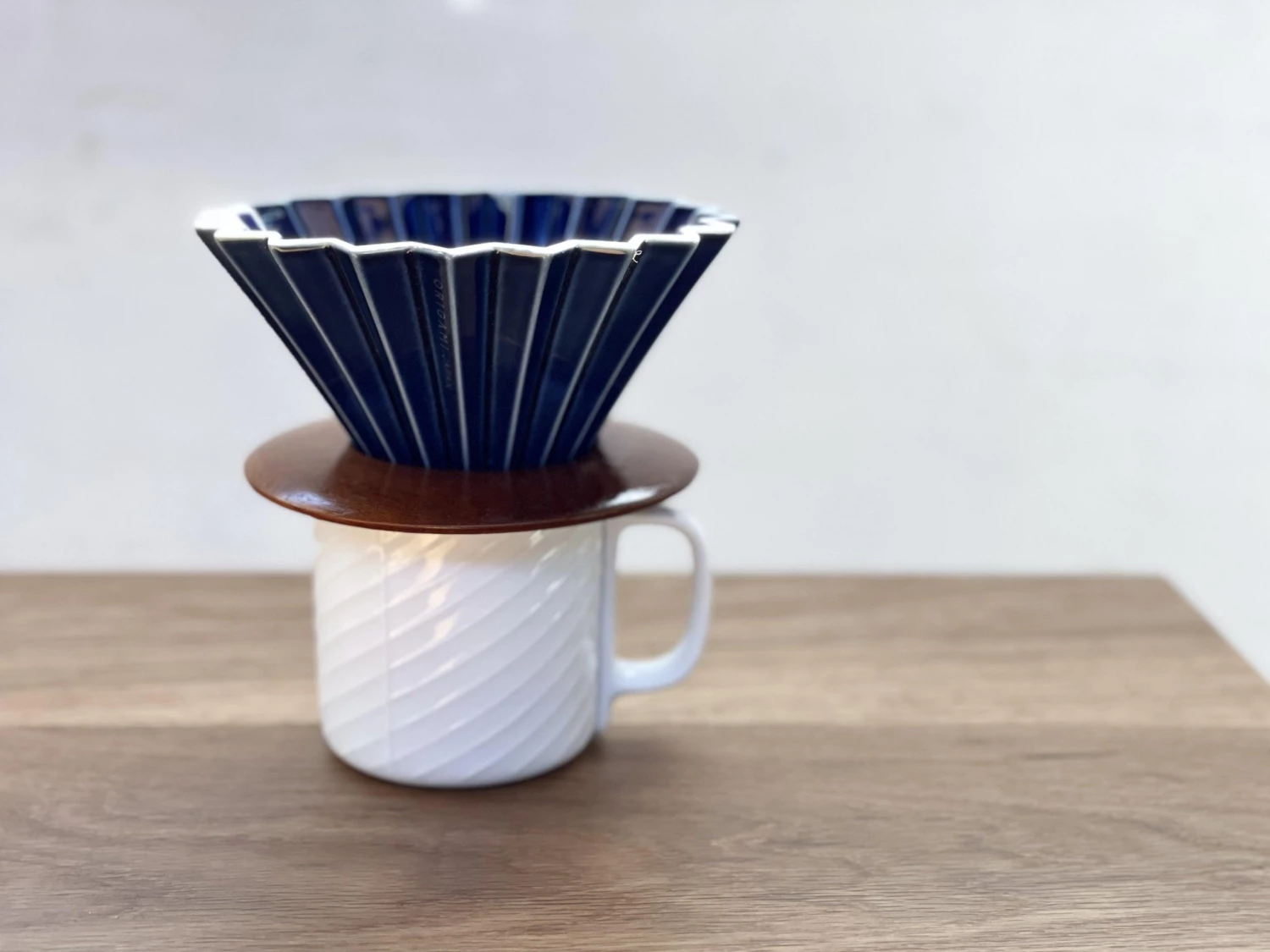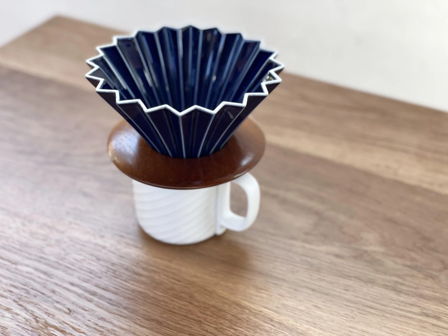 Sato Beni Shouten Origami Dripper (M) Navy with Wooden Stand – Premium Coffee Brewing Tool