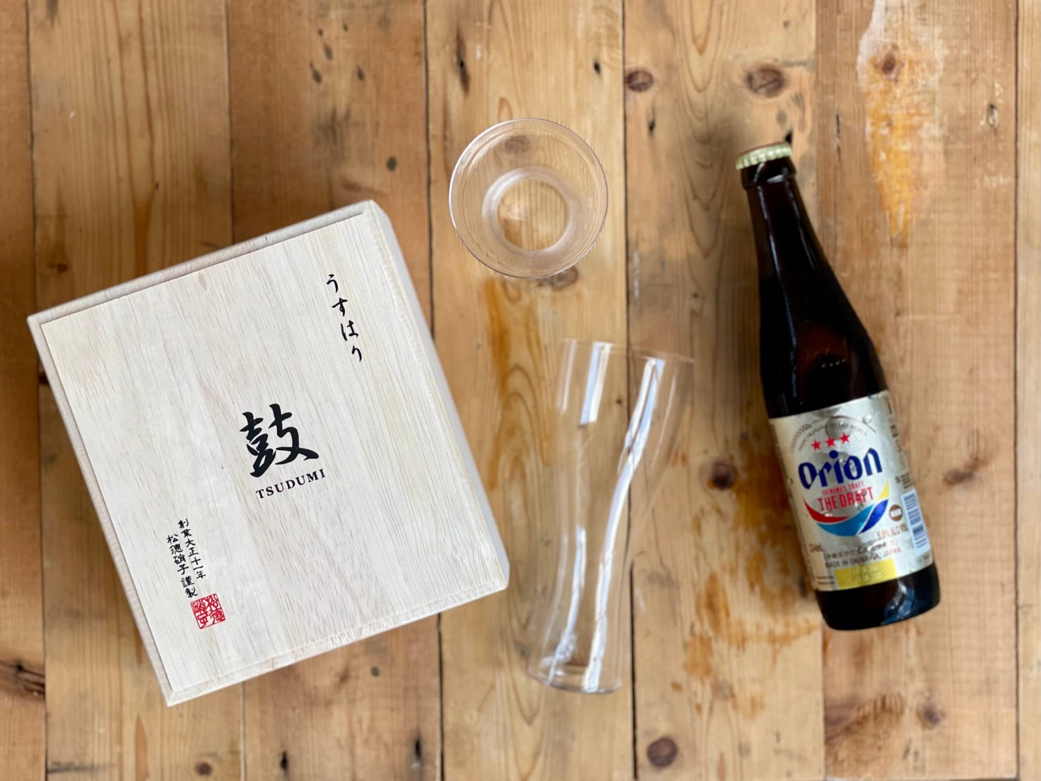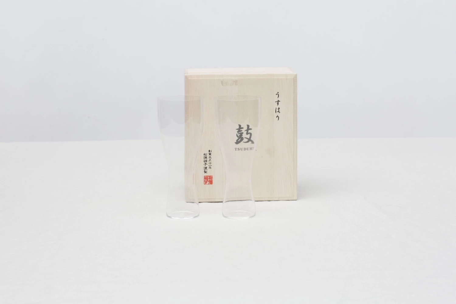 These remarkably thin drinking glasses calledcUsu-hari (thin glass) are each carefully hand blown and crafted by master craftsmen in the Sumida district in downtown Tokyo. They are created using the same techniques that was traditionally used for hand-making glass light bulbs. Less than 1mm thick, the feel of it in your hands, the sound ice makes when it is swirled in the glass, and fineness of the rim is truly exquisite and unique to this glass.