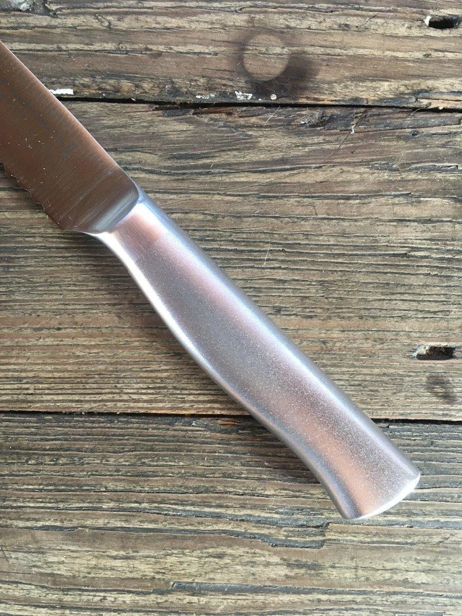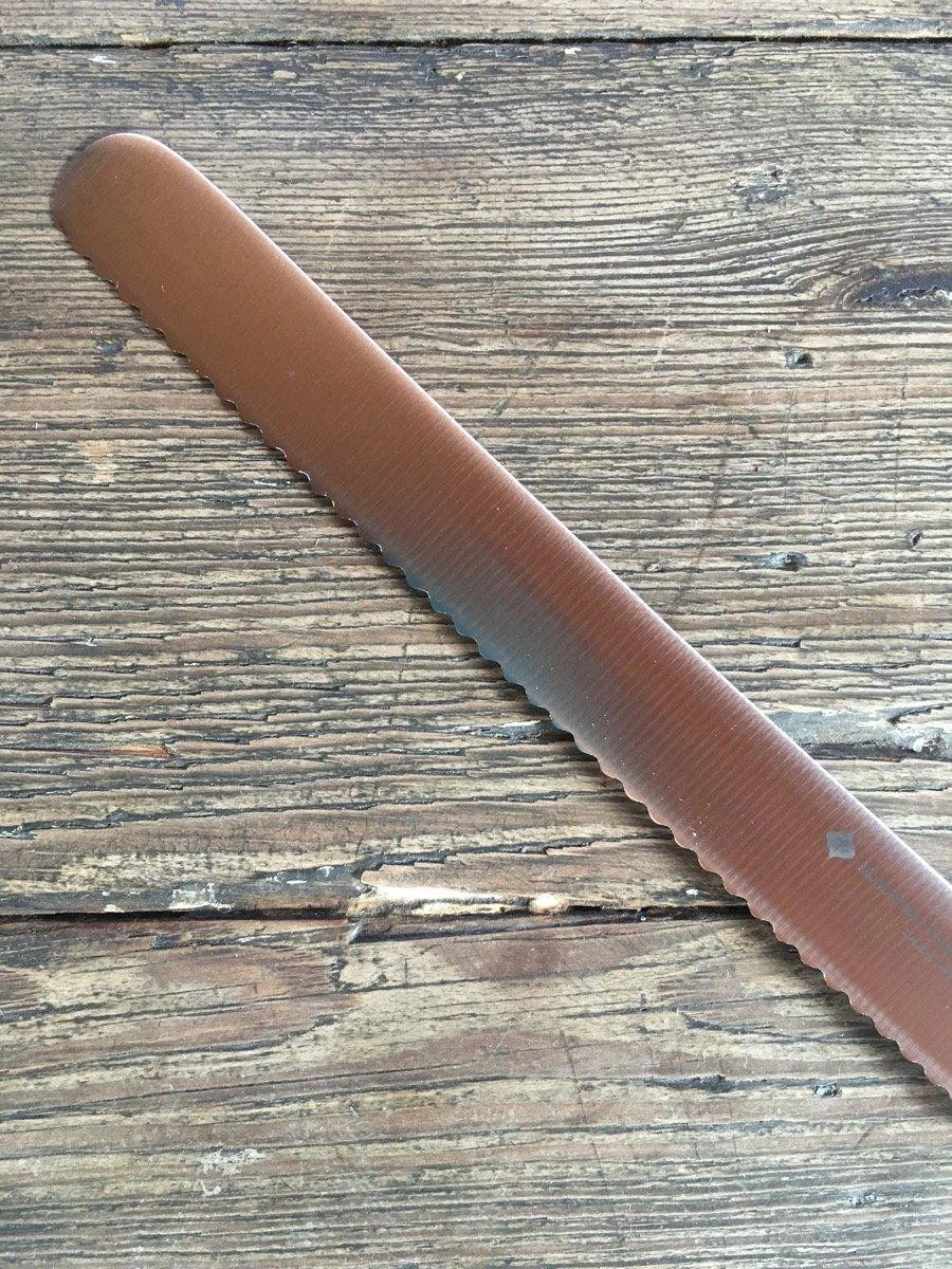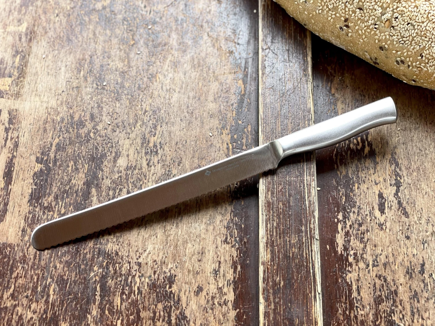- The razor-sharp stainless steel blade ensures clean, effortless cuts through crusty breads, cakes, and pastries without crushing or tearing.