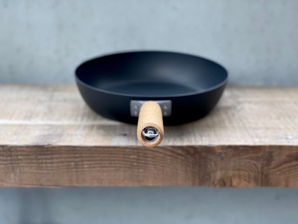 This is the 26cm wooden handle, medium pan perfect for preparing family meals.