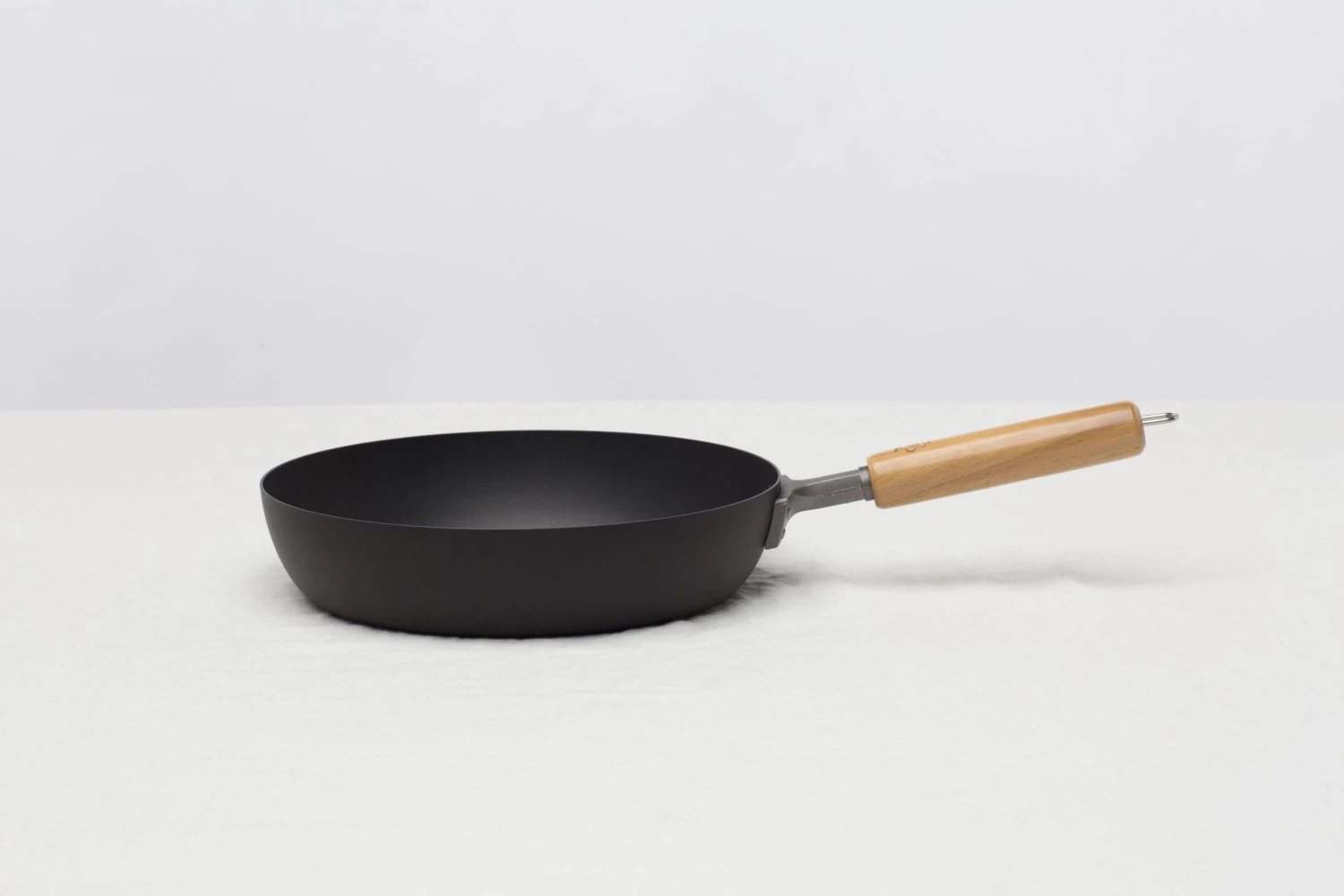 The perfect all rounder, everyday pan, suitable for family style cooking. A beautiful round profile timber handle provides comfort and control. Manufactured from Magma Plate Iron. A technology that produces an irregular surface of concave and convex patterning on both sides of the pan to enable a quick production and even distribution of heat. Making TAKUMI Pans, much loved everyday kitchen essentials.